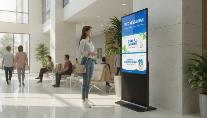 Dengan tampilan visual yang lebih menarik dan interaktif dibanding media konvensional, digital floorstand efektif dalam menarik perhatian pengunjung. Beberapa unit juga dilengkapi fitur tambahan seperti kamera, QR code, dan speaker untuk menghadirkan pengalaman yang lebih interaktif dan menarik.