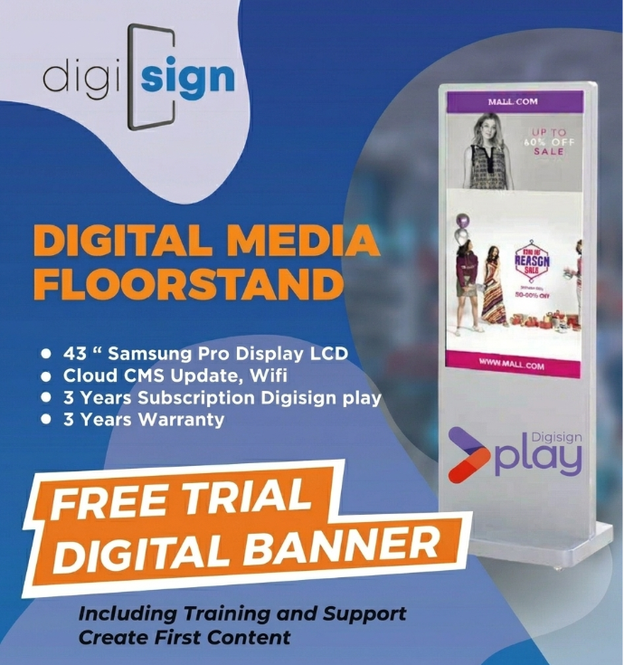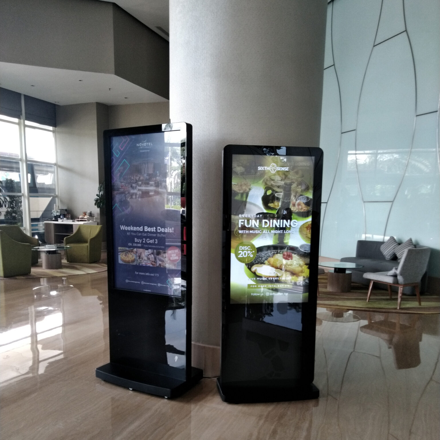 Ditempatkan di area strategis seperti mall, bandara, dan ruang publik, Digital Floorstand mampu menarik perhatian dengan tampilan yang tajam dan atraktif. Beberapa varian juga dilengkapi fitur tambahan seperti kamera, QR code, dan speaker untuk menciptakan interaksi yang lebih engaging. Lebih dari sekadar display, Digital Floorstand membantu meningkatkan daya tarik brand dan menyampaikan pesan secara lebih efektif serta berkesan.